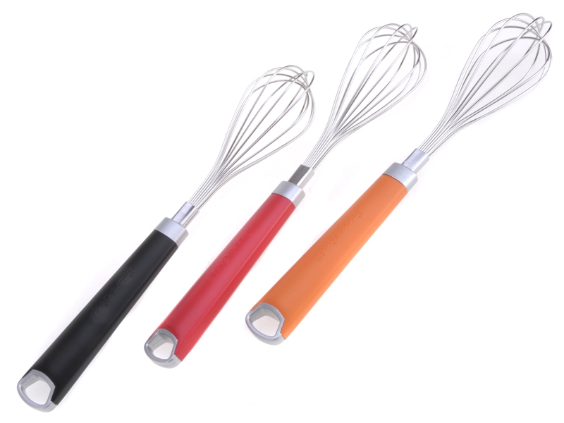 Chất liệu Inox, cán nhựa 3 màu: cam, đỏ, đen. Kích cỡ 28cm