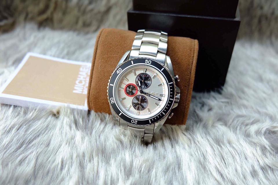 - Đồng hồ Nam Michael Kors chrnograph 6 kim tính giờ cọc số phản quan, viền ngoài xoay 360*.