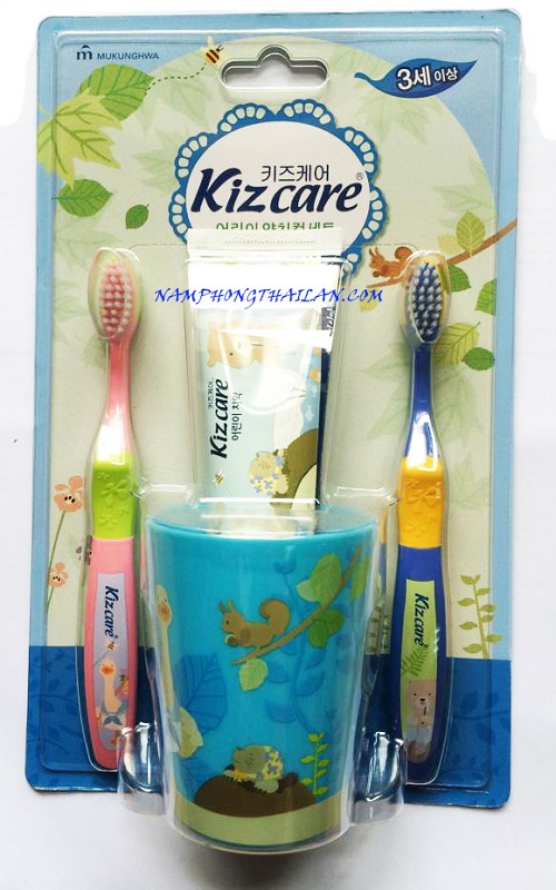 Gồm 2 bàn chải, 1 cốc, 1 kem đánh răng
