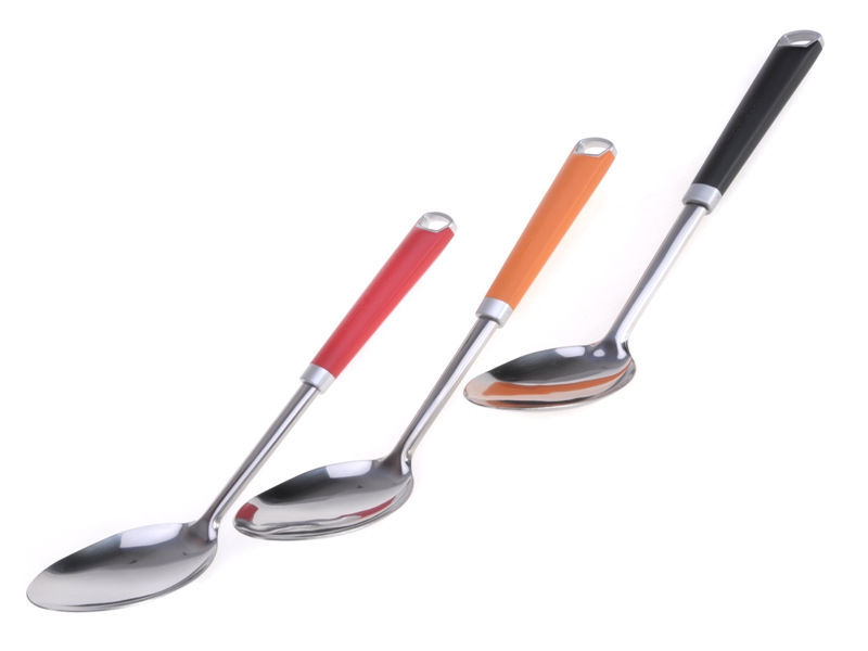 Chất liệu Inox, cán nhựa 3 màu: cam, đỏ, đen. Kích cỡ 32,5cm