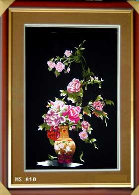 Tranh thêu Lọ hồng nghệ thuật